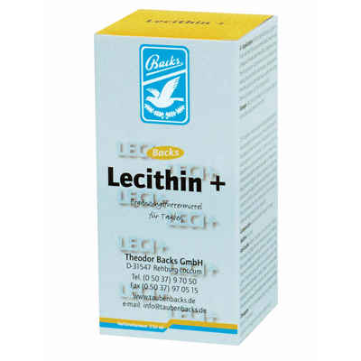 Hinweise für die ordnungsgemäße Verwendung: Backs Lecithin + wird unter das Futter gemischt. Die Verabreichung empfiehlt sich während der Aufzucht und bei abgesetzten Jungtauben 3 x wöchentlich. Während der Reise und während der Mauser 2 x wöchentlich.