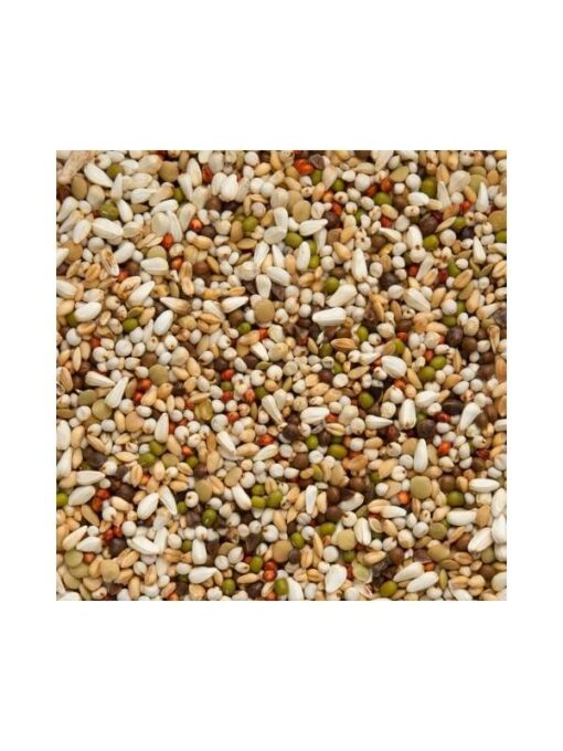 Zusammensetzung: Dari weiß 27%, weiße Weizen 21%, Kardi 13%, Wicken 10%, Linsen 8%, Sorghum rot 8%, Katjang Idjoee 7%, Paddy-Reis 3%, Buchweizen 3%