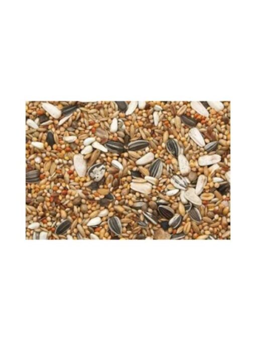 Zusammensetzung: Kanariensaat 13%,Hirse gelb 21%, Weizen hell 12,5%, Hirse weiß 11,5%, Sonnenblum. gestreift 8%, Haferkerne 9%, Kardy weiß 6%, Hirse rot 4%, Sonnenblum. weiß 4% Leinsaat 3%, Hanfsaat 3%, Paddy Reis 2,5%, Buchweizen 2,5%