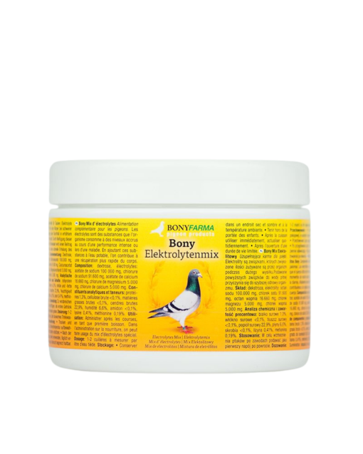 Elektrolyte sind Stoffe die der Körper bei schwerer Anstrengung oder Durchfall in erhöhtem Mass verbraucht. Durch Beifügung Bony Elektrolytenmix am Trinkwasser wird einen Beitrag geliefert an eine schnelle Erholung des Körpers.