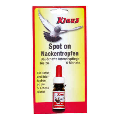 Anwendung: Teilen Sie das Gefieder Ihrer Taube einmal zwischen dem Nacken und weiter zwischen dem Schwanzansatz, so dass die Haut freiliegt. Danach tropfen Sie 1-2 Tropfen je nach Körpergewicht an den Nacken der Taube auf das freiliegende Gefieder.