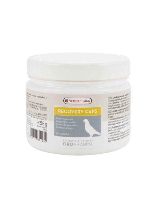 Diese Kapseln sind eine einfach aufnehmbare, ernärhungsphysiologisch wertvolle Nahrungsergänzung mit hochwertigem Qualitätseiweiß, Aminosäuren, Vitaminen, Spurenelementen und Mineralstoffen. Recovery Caps enthalten auch Probiotika, Präbiotika und Verdauungsenzyme.Durch die Kombination der Probiotika und den speziellen Verdauungs-enzymen erholen sich die Darmflora und das Verdauungssystem der erschöpften Tauben besser und die Tauben kommen schneller wieder zu Kräften.