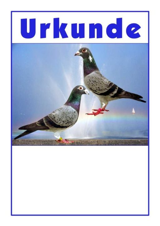 Edle Urkunde für Taubenzucht mit Goldrand in DIN A4; 200g/m²