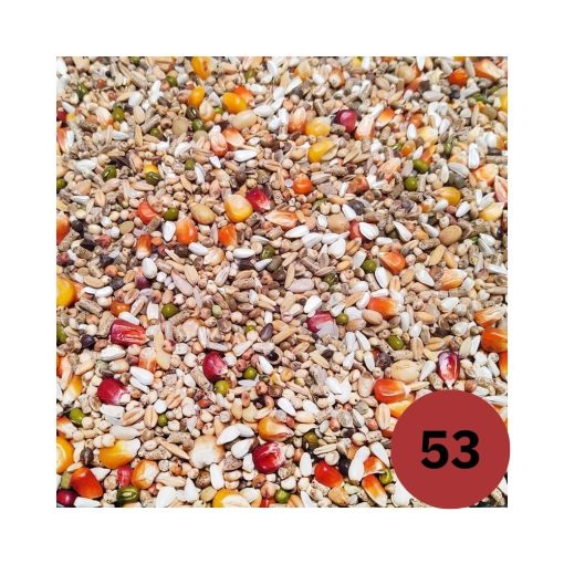 Zusammensetzung: Pro Immune Pellet, Roter französischer Mais, Cribbs Mais Bordeaux, Cribbs Mais gelb klein, Cribbs Mais gelb, Weizen hell, Gerste hell, Milokorn rot, Dari weiss, Hafer, geschält, Paddy Reis, Cargoreis, Kardysaat, Geschälte Sonnenblumenkerne, Rapssaat, Hanfsaat, Hirse weiss, Flacher Samen, Wicken, Katjang idjoe, Sojabohnen getoast, Perilla, Linsen, Wilde, Saaten/Unkrautsamen, Mariendistel, Sesam, Sämereienmischung Superieur